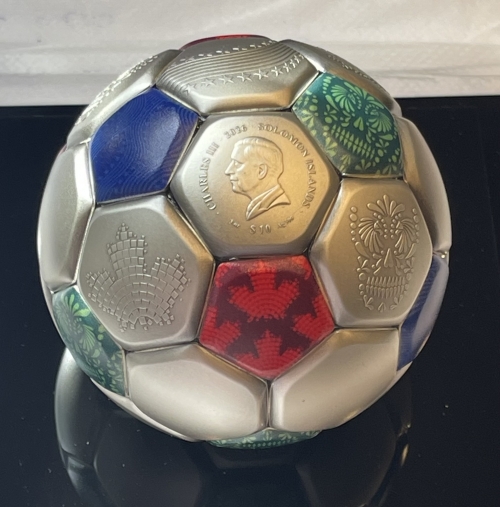 • Эта удивительная серебряная монета весом 3 унции посвящена Чемпионату мира по футболу FIFA™ 2026 года. У нее сферическая форма футбольного мяча с античной отделкой. Поставляется в специальном футляре с сертификатом подлинности. Тираж: 2026 штук.