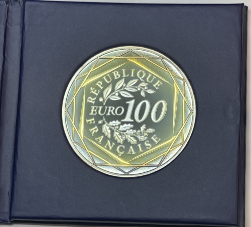 Серебряная монета 100 евро Петух, Франция, 2014 г.,общий вес 50 г., Ag 900
